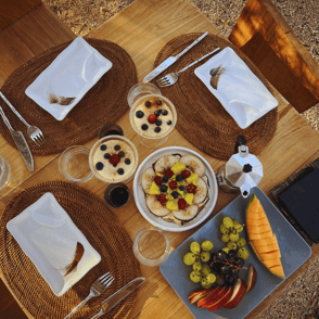 Frutta fresca, proposte dolci, continentali, vegane e vegetariane, preparate con ingredienti selezionati e attenzione a intolleranze e allergie.