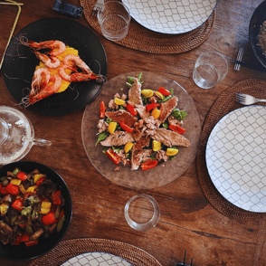 I menu che offriamo spaziano tra diverse tradizioni culinarie, esplorando culture diverse, e includono opzioni per ogni esigenza alimentare, dalla cucina vegana a quella vegetariana, passando per piatti senza glutine e per chi segue altre diete specifiche.