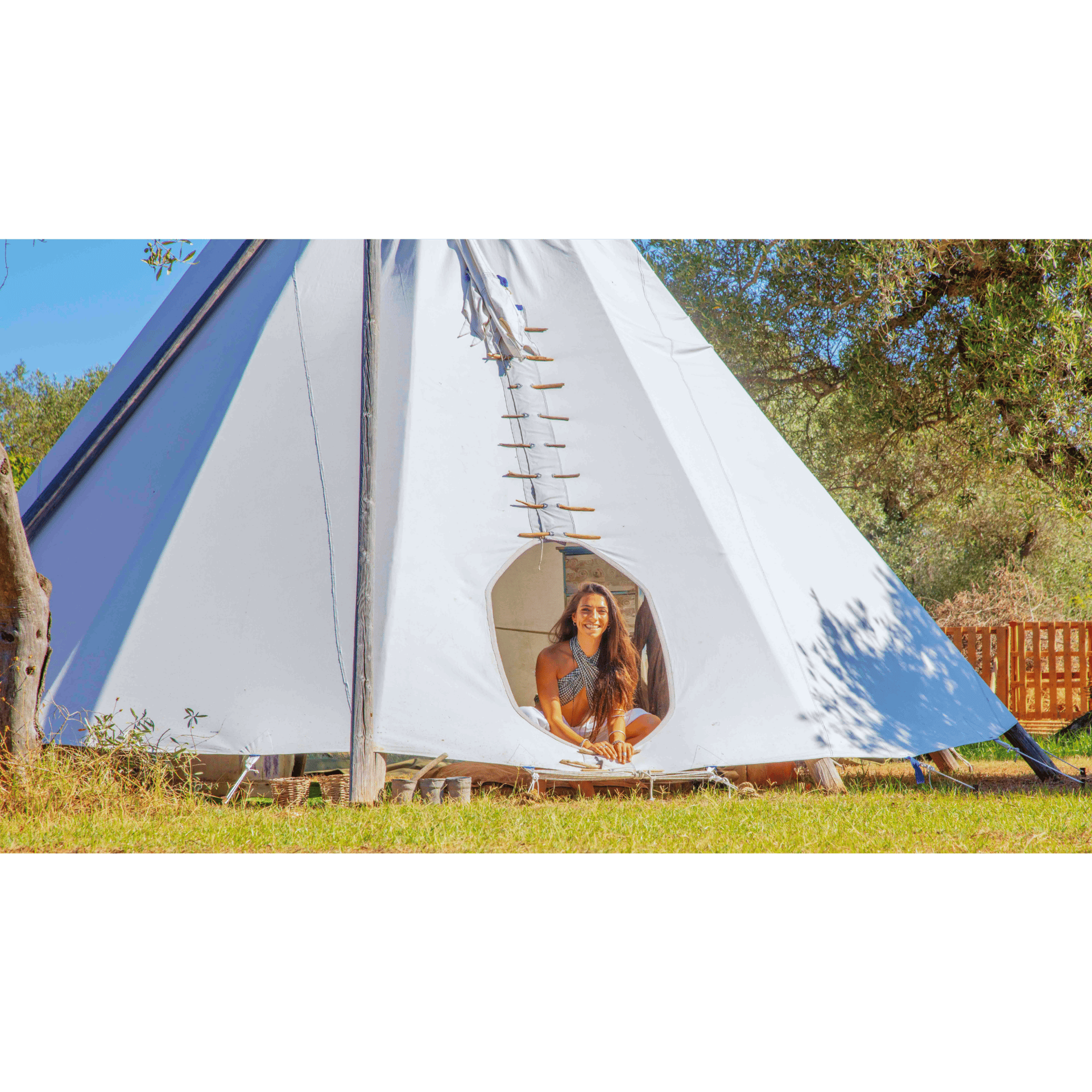 Ispirato alle tradizionali abitazioni dei nativi americani, il tepee è una tenda conica sostenuta da solidi pali di legno e rivestita con materiali naturali.
